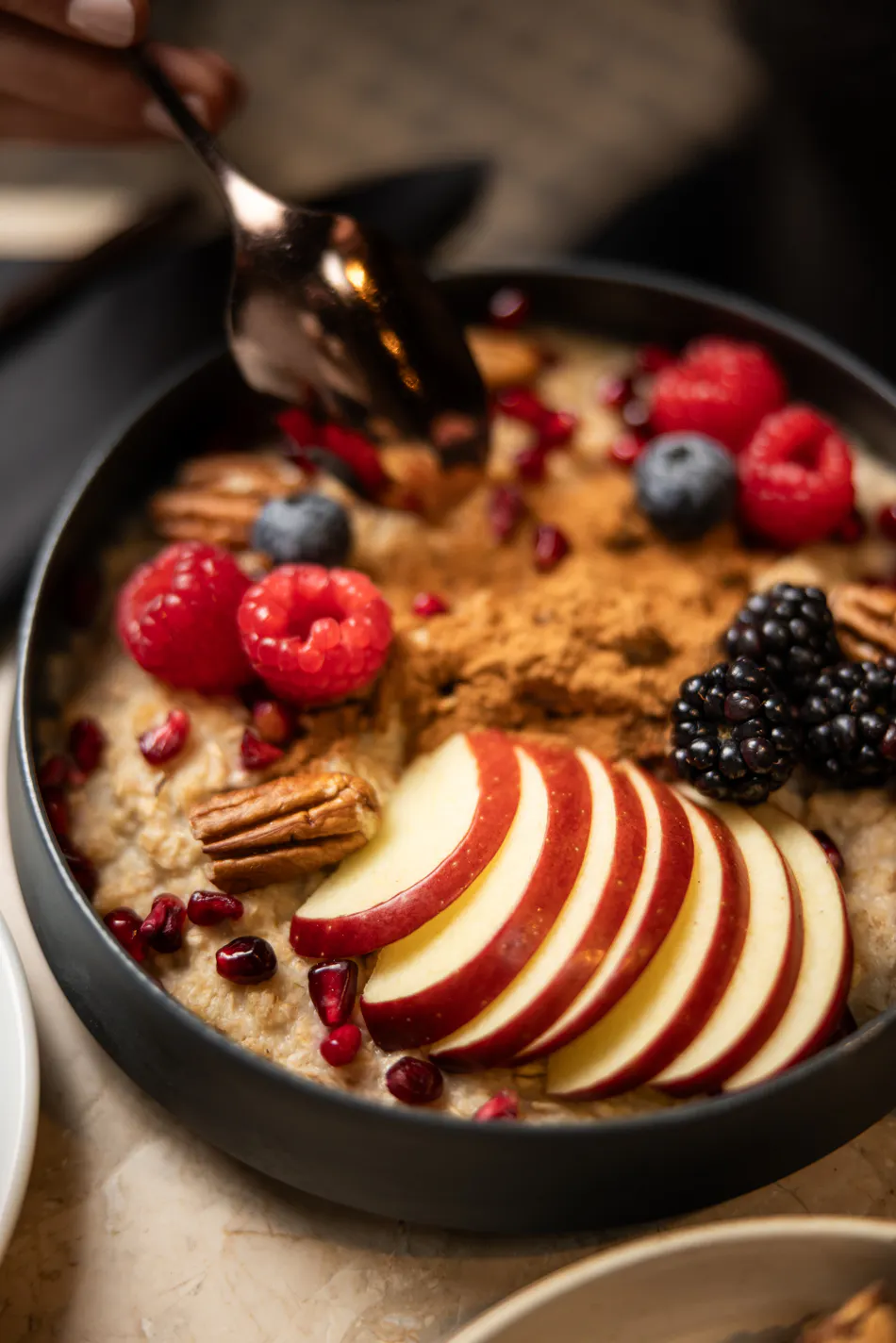 Wärmender Brunch-Porridge mit Apfel, Zimt & Beerenvielfalt.