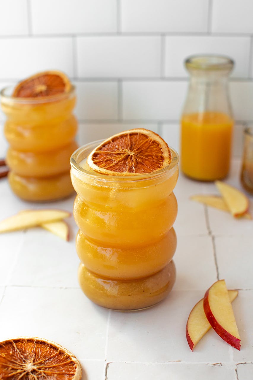 - In a glass with ice, pour about 30 ml or the desired amount of the fruit compote and 60 ml of Aperol.