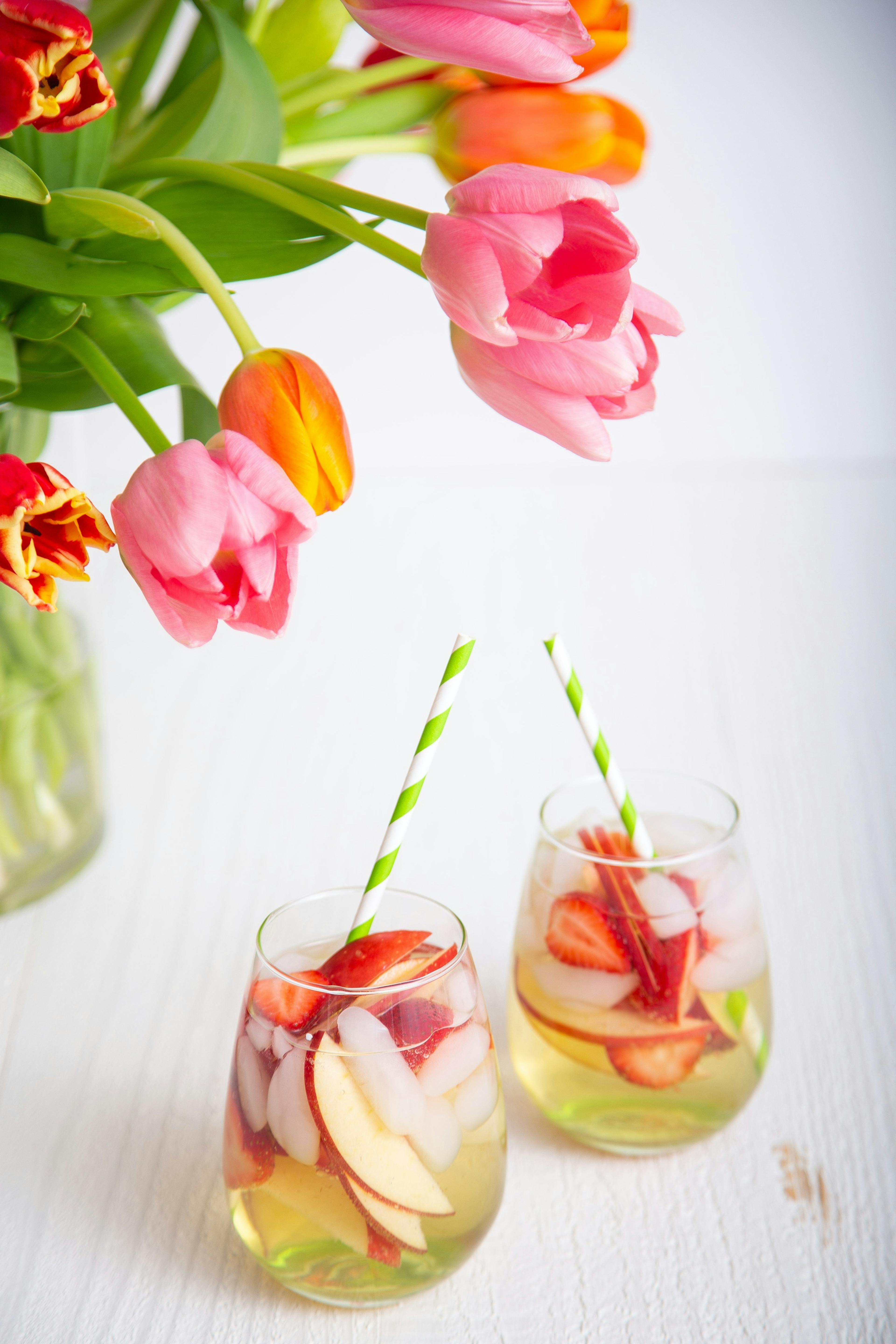 Bebida refrescante de manzana con fresas y cítricos.