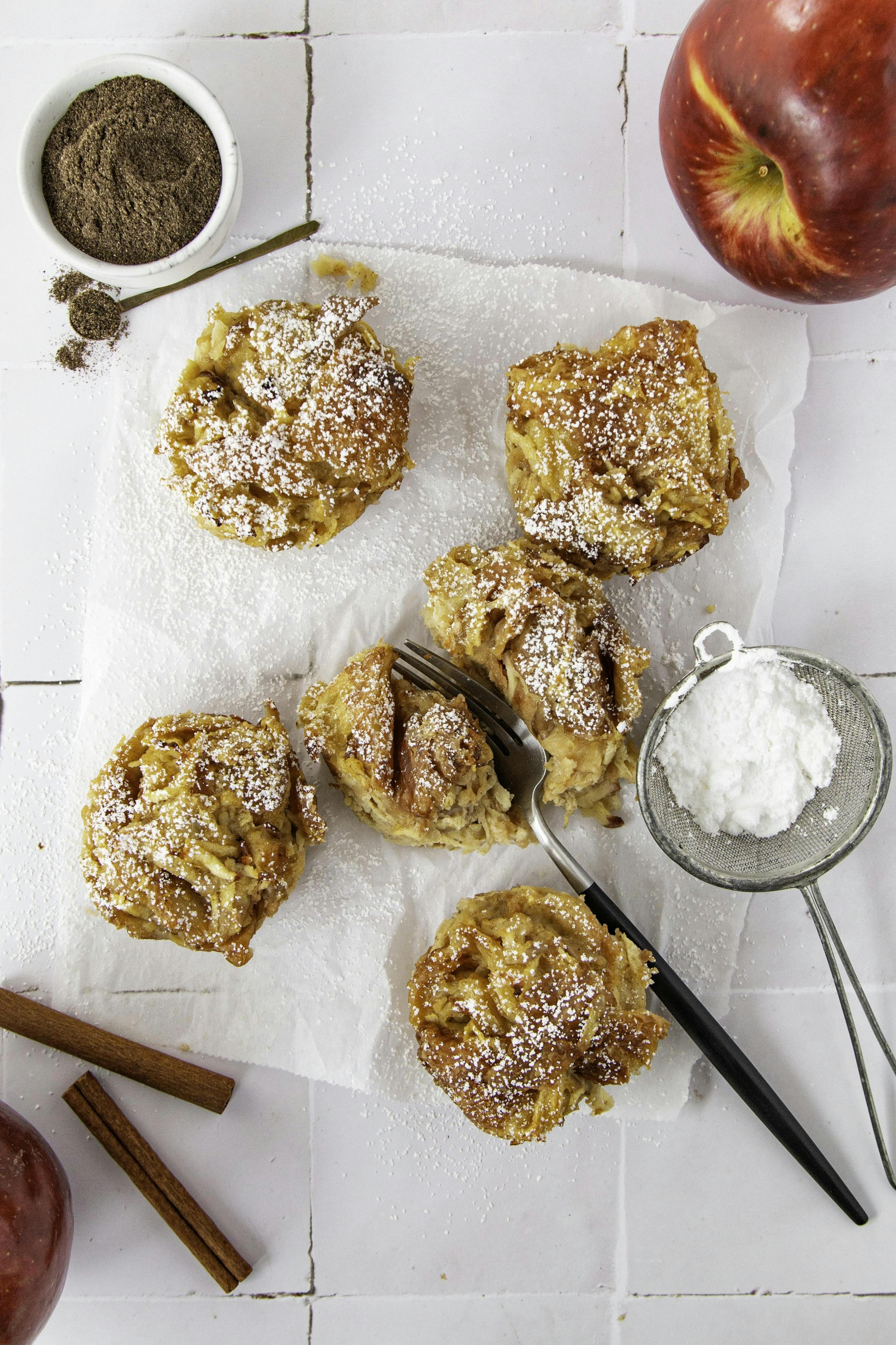 Bocados especiados de croissant y manzana.